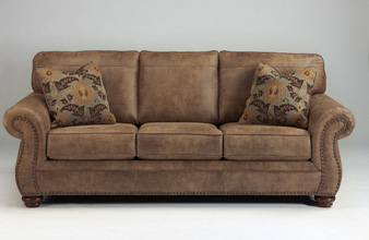 Dramatically transform your living space with the rustic look of weathered leather you loveāat a fraction of the cost. That’s the beauty of the Larkinhurst faux leather sofa. Washed in earthy Southwestern tones, with generous back and seating support and jumbo window-pane stitching, it envelops you in comfort and quality. Classic elements such as rolled arms and turned feet bring in just enough traditional touch.